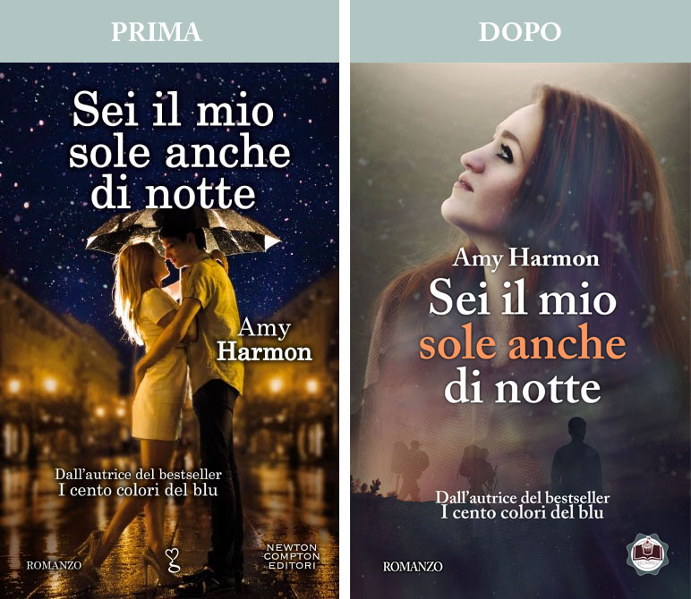 PRIMA. Una delle copertine sicuramente fuori tema è quella del libro dell'autrice america Amy Harmon, "Sei il mio sole anche di notte". La cover proposta dalla Newton Compton (ovvero la casa editrice che ha portato in Italia questo bellissimo romanzo) pone in primo piano due ragazzi che sono abbracciati l'uno all'altro sotto un bel cielo innevato e in mezzo ad una piazza di una città. Lo sbaglio più grosso che è stato commesso nel realizzarla è stato di non aver azzeccato nulla con la trama. I due protagonisti nel romanzo sono due persone completamente diverse, Fern è una ragazza che mai si sognerebbe di indossare dei tacchi e un vestito così corto, e tra l'altro ha dei bellissimi capelli rossi, non biondi. Ambrose è un ragazzo tormentato, ha il viso sfigurato e i capelli rasati per via delle ciccatrici, e per di più è stato campione di lotta al liceo e pure soldato, per cui gode di un corpo massiccio e muscoloso: tutto l'opposto del povero figurino in copertina. Insomma, avete capito la questione? I più come ultimissima cosa, lo sfondo, per niente raffigurante la piccola cittadella americana dove i protagonisti abitano nel verde. Lo scorcio che ritroviamo parrebbe più quello di una città europea come Parigi, ed è per questo che il romanzo viene fatto passare agli occhi di chi non ama gli chic-lit, come uno chic-lit appunto, un genere lontano anni luce da quello che è la meravigliosa storia di "Sei il mio sole anche di notte".