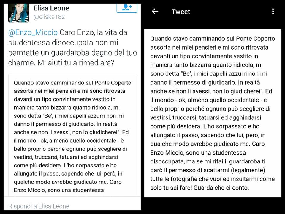 Se volete dare un'occhiata al post su TWITTER di Enzo Miccio
