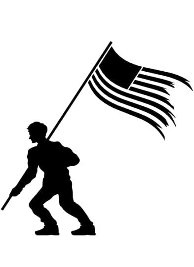 In this story, Dom is yet again pushed and hurt by the nation he so earnestly wanted to serve and protect. This image is designed to represent a batter soldier still loyally carrying an equally battered American flag.