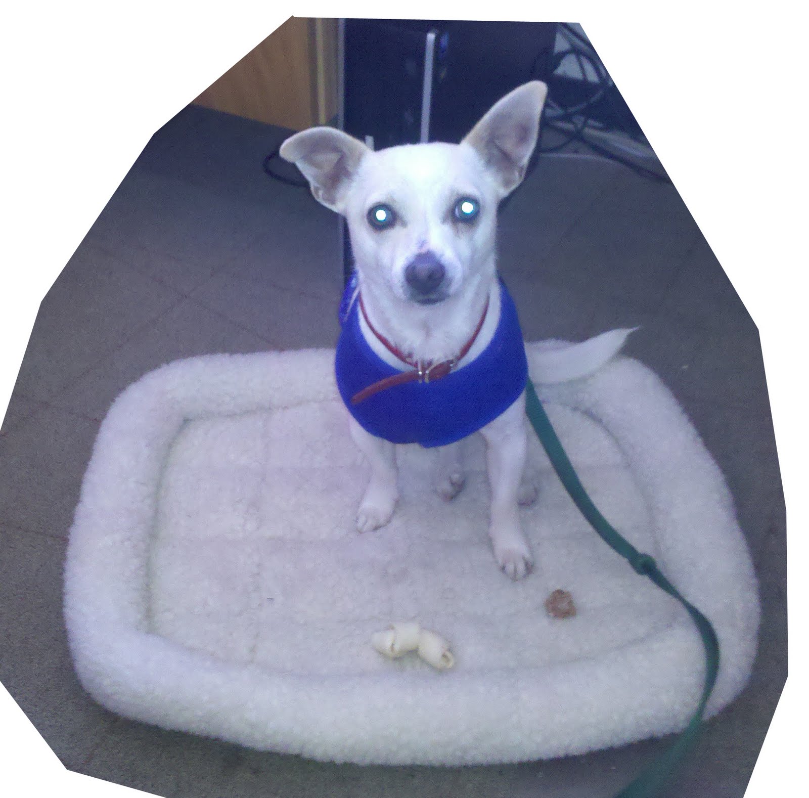 And I turn around and Stanley is just sitting there with his head cocked sideways and this big grin on his face like he's laughing at me. So now he's tied to a chair in here.