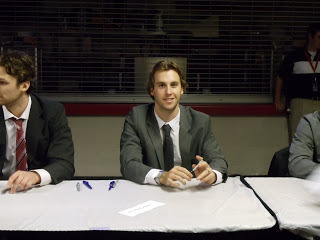 James Reimer is another former Royal who we were really sorry to lose, but, until he was injured early this season, was playing great in goal for the Maple Leafs. He's young, he seems like a sweetheart of a guy and look at that smile. Optimus Reim, indeed.
