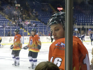 Center Ryan Cruthers, team captain, is one of the top scorers in team history. He's gritty, he's got an edge and takes the occasional stupid penalty late in the game (according to my husband), but he always makes time to mess with the kids who gather at the glass during warmups.