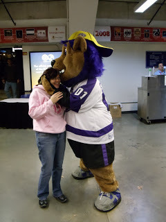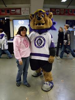 Okay, not quite like the hunks I've been featuring for the past couple of weeks but he is rather large. And furry.Slapshot always has a high-five for the kids (and the adults) and he's always fashionably dressed, whether as a turkey for Thanksgiving or with a Santa hat or in a referee's shirt.