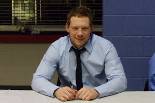 Until a few weeks ago, I'd never seen the guy smile. He's got a wicked intensity on the ice that occasionally boils over into frustration. But after a recent win, where he broke that record, the Royals held an autographing session. When I asked him to smile for me, this is what I got. Total 360. And totally hot.Eventually, Olivier will move up. It's just a matter of time. I'll be thrilled for him but sorry for our loss.