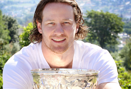 Love this pix of Duncan Keith, a D-man for the Chicago Blackhawks. He plays the game hard (according to the hubby) and even though he lost seven teeth (called chicklets by true fans) after he took a puck to the mouth in May 2010, he returned to help his team clinch a place in the Stanley Cup finals.