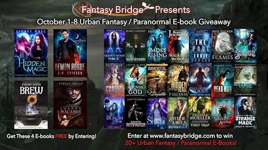 Fantasy Bridge is dedicated to bringing you exclusive deals, new releases, and other exciting news from your favorite Fantasy authors straight to your inbox! Its Captains are excited to bring you an Urban Fantasy / Paranormal Giveaway that’s sure to keep you up all night reading. There are FREE Prizes available for all who enter between October 1 and 8, plus the chance for 5 winners to receive 25+ e-books from Fantasy Authors of every stripe. One grand prize winner will win those books and a $25 Amazon Giftcard!