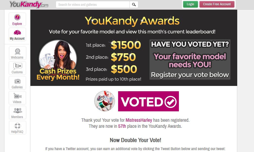 First vote is free and the rest require action or actually paying for votes. I do love an honest election system. I'm in the top 100, but with your loser help I'll be #1 because you don't have anything better to do. So go fucking vote already! Click HereCard