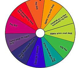 We can play a game together via Skype (where you cam and show me the wheel spinning, and then I watch you do what it says) or on Teamviewer. Each game comprises of 5 (FIVE) spins of the wheel. If the wheel lands on +1 spin you get a do-over spin AND add a spin.
