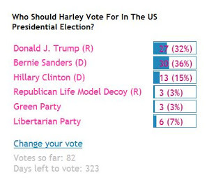 Eat the Poor: A Modest Proposal for Donald Trump to be President of the United States: Mistress Harley gets Political for the 2016 electionThe poll never stops and no I'm not adding Ted Cruz because the America people would never elect a grown man who calls himself Ted. Also "z" names usually mean your stupid. Trump is still behind Sanders who has an incredible lead with people who have Internet connections and jerk off all day. If you had a real job you would know he's not going to be president of El Beth Shalom.