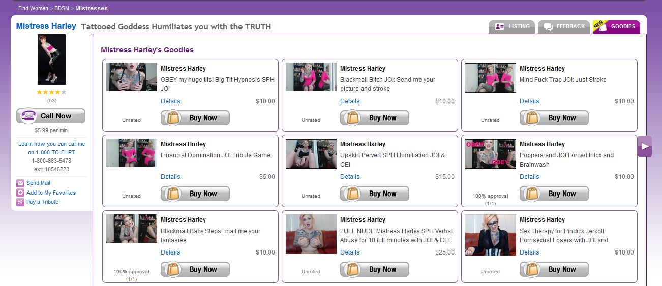 Talk to Mistress Harley now via NightFlirt 1-800-863-5478 ext: 10546223Mistress Harley: FinDom, Techdomme, Professional Bitch