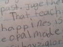 These two sentences seemed so incredible to me that I read them over and over before I continued on and found the best sentence of all, which begins this way “And happines is all over the book because opal made friends . . .”