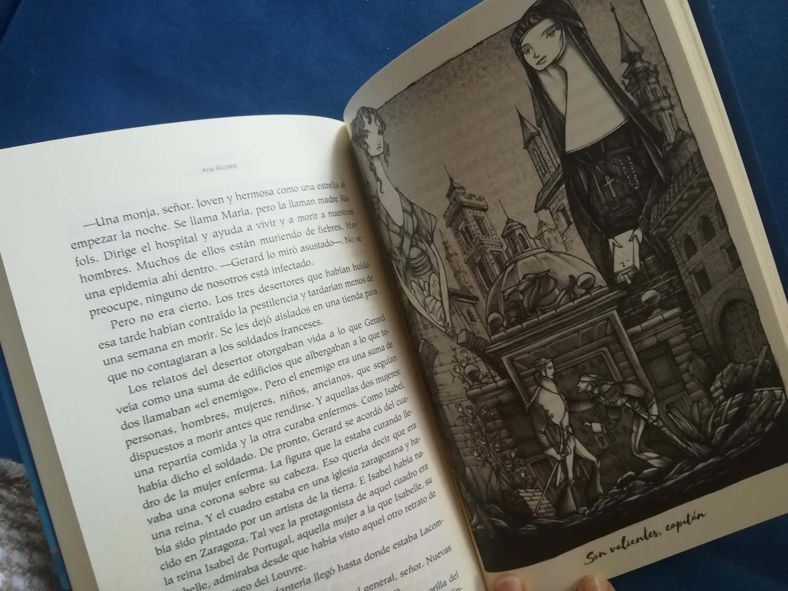 Dos historias entrelazadas, la de los muchachos en la actualidad, y la un soldado francés, Gerard Lacombe, que luchó con las tropas de Napoleón en los Sitios de Zaragoza. La desaparición de tres cuadros de Francisco de Goya que decoraban la iglesia de San Fernando, que yo veo desde mi casa... Uno de esos cuadros representaba a Santa Isabel de Portugal, reina de Portugal nacida en el Palacio de La Aljafería de Zaragoza, porque era hija de un rey de Aragón.