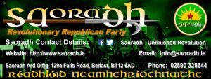 Joe: Okay, so you can find us at www.saoradh.ie . You can also find us on Facebook, Saoradh – The Unfinished Revolution – and if you’d like to find our specific Doire office, which is the headquarters for Saoradh – it’s Junior McDaid House on Facebook.