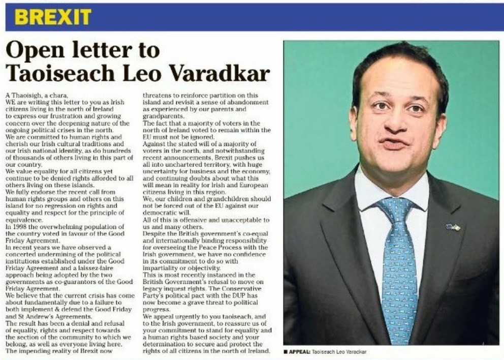 Given the dynamic which Brexit has unleashed, the fall back position of Republicans should not be to bemoan every initiative undertaken by others — Monday’s letter from ‘civic nationalism’ being a case in point. There is a particular tendency towards this response where a hint of the ‘dastardly Shinners’ is detected. Brexit is bigger than Sinn Féin, however, and it’s time Republicans got their heads around this. They should not be the lens through which we undertake our analysis of political developments.