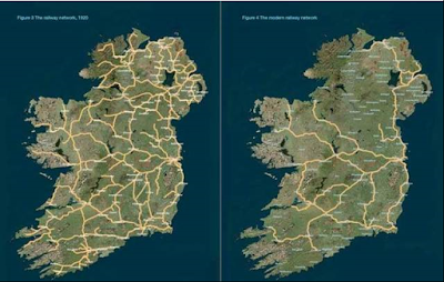 The decimation of Donegal's 112 miles of railways is evidence of the effect of partition as even today there is no railway in the county. The only cross border train is the Dublin to Belfast line. The picture above shows the erosion of our railway in Donegal and other border counties. This cut off has left not just Donegal, but the entire Northwest of Ireland without a railway system. In the entire North there is only one other rail line going from Derry city, along the North coast, to Belfast.