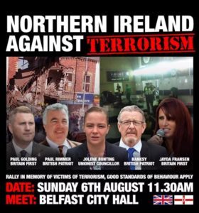 27 July 2017Audio PlayerWilliam: The far-right party, Britain First, is to take part in a rally outside Belfast City Hall in early August. It’s an event organised by the independent Unionist Councillor, Jolene Bunting, who’s in the studio with me. Welcome! Good Afternoon to you.