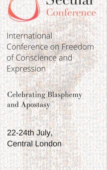 The two-day conference will discuss censorship and blasphemy laws, freedom of and from religion, apostasy, the limits of religion’s role in society, LGBT and women’s rights, atheism, secular values and more.