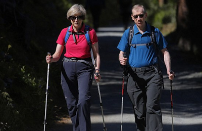 The British media used this photo to imply May was walking in Wales over Easter when she had her Damascene conversion to hold a snap election, in fact the photo was taken in Switzerland in 2007.