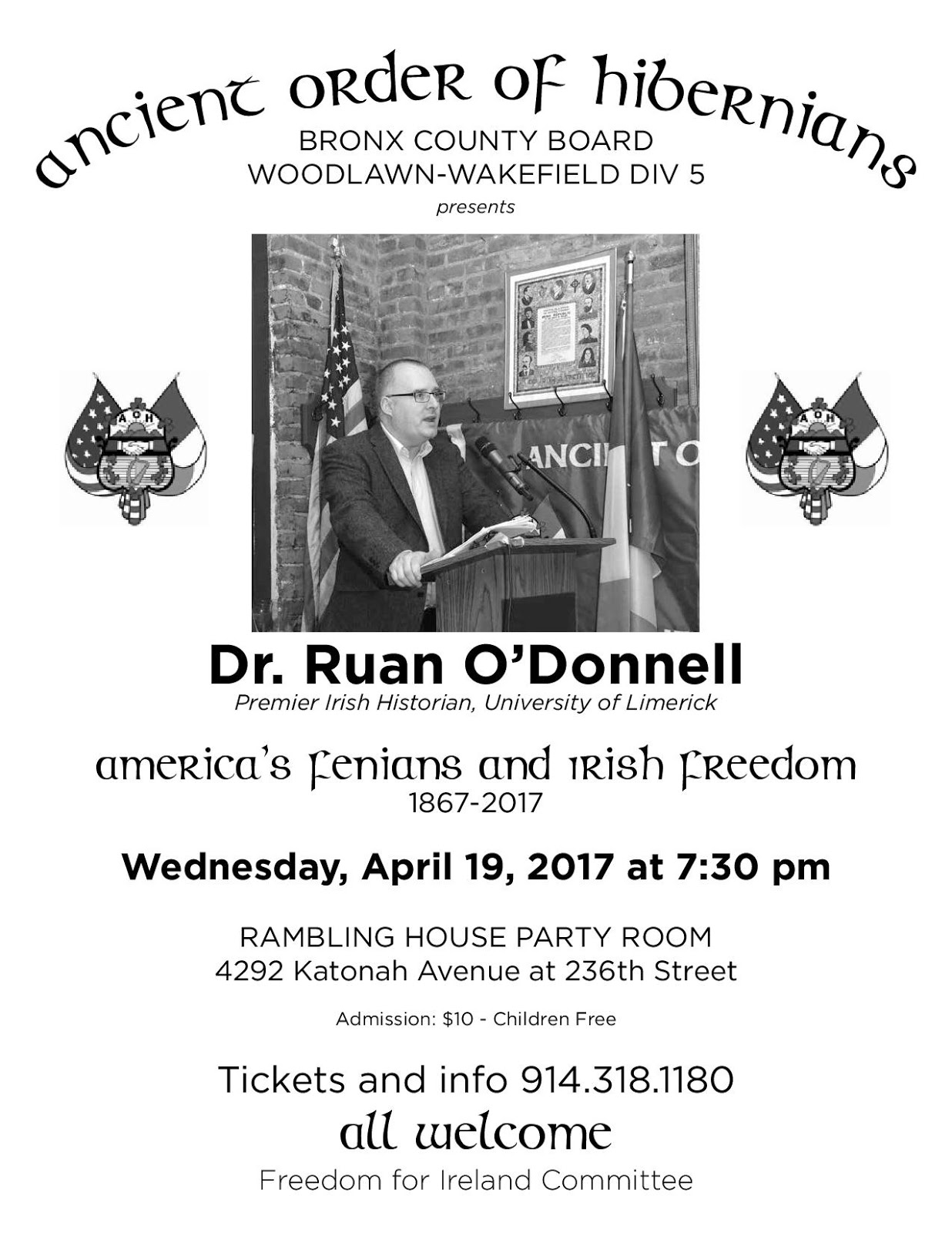 In response to listener requests we are attaching a flyer about Professor O'Donnell's New York area appearance in the Bronx on Wednesday April 19th.