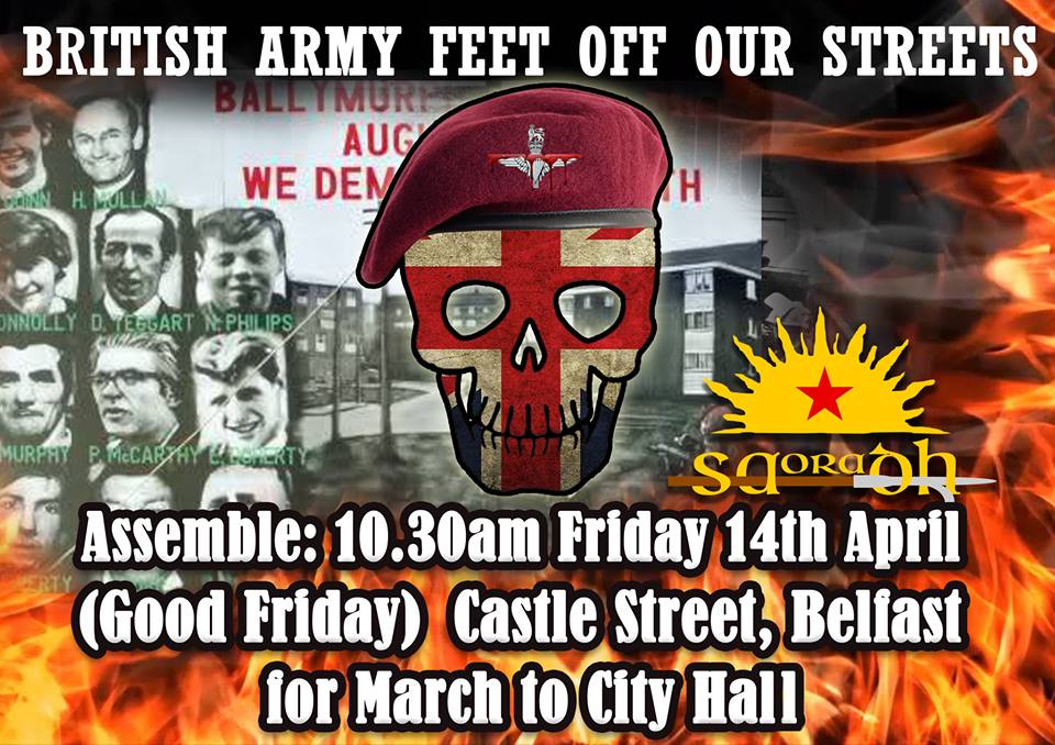 The Good Friday Amnesty march by British Army vets in Belfast City Centre against prosecutions for Bloody Sunday, the Ballymurphy Massacre or other murders, and Saoradh's counter demonstration in support of crown victims, will be discussed by Saoradh representative, Joe Barr.
