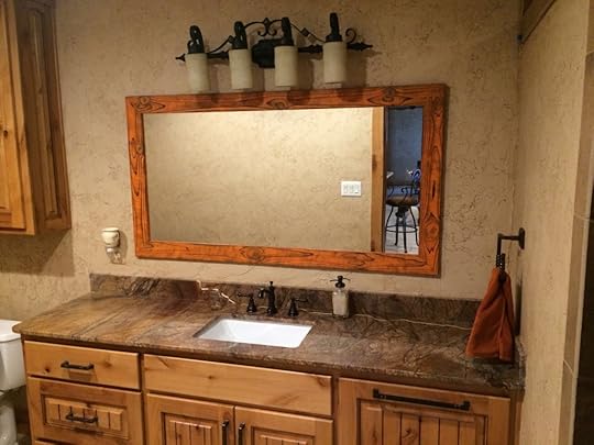 Recently, I completed a project with a homeowner in Venus, TX. This client wanted to add a bit of So-Cal comfort to her Cowboy Chic bathroom remodel. Rather than use a traditionally framed mirror, she opted for a custom frame with a 3D texture inspired by the West Coast.