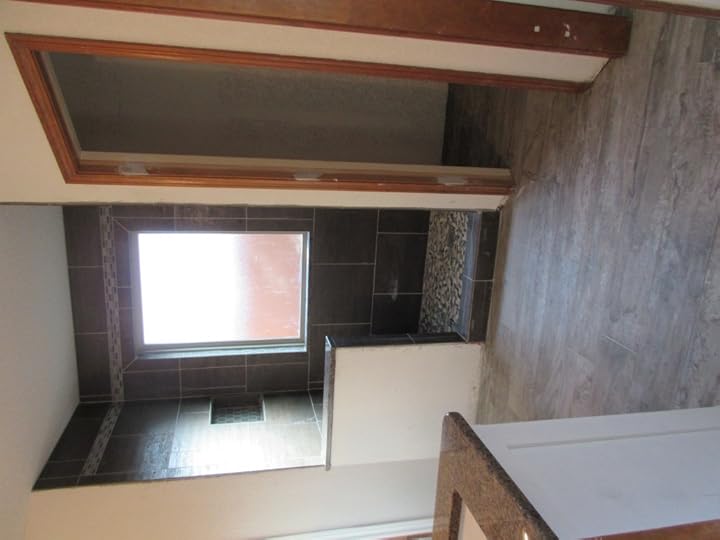 This expanded space once housed an un-used tub. Since then, the tub has been removed, framework has been added, a new window installed, a pony wall with granite ledge and tile throughout provides a clean and transitional...