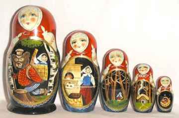 Sumber: russian-crafts.comKonon pada zaman dahulu di pedalaman Rusia tinggalah dua pasang suami istri renta bersama cucu kesayangan satu-satunya, seorang bocah perempuan bernama Masha. Suatu hari Masha pun pergi mencari jamur bersama teman-temannya ke hutan. Tetapi malang, ia terpisah dari teman-temannya. Si kecil Masha akhirnya menemukan sebuah pondok kayu. Di pondok itu tinggal seekor beruang merah yang besar yang melarangnya keluar rumah dan memaksanya mengurus segala keperluan rumah tangganya.Suatu hari ia meminta beruang mengantarkannya makanan ke kampung untuk kakek dan neneknya. Setelah kue itu sampai di rumah kedua kakek dan neneknya, ia berjanji kembali ke pondok hutan. “Hutan ini berbahaya. Lebih baik aku yang mengantarkan makanan ke rumahmu,” kata beruang. Justru itulah yang diinginkan Masha. Ia menyiapkan sebuah keranjang besar dan mengisinya dengan kue buatannya yang lezat dan buah berangan. “Jangan pernah memakan kue dan buah berangan selama di perjalanan. Saat kau pergi, aku akan memanjat pohon yang tinggi sekali dan mengawasimu dari kejauhan,” pesannya. Beruang setuju. Tetapi saat beruang akan pergi, diam-diam Masha masuk ke dalam keranjang dan menutupi dirinya dengan kue dan buah berangan.Begitu sampai di depan rumah kakek dan nenek, beruang meletakkan keranjang besar itu di depan pintu dan mulai mengetuk pintu. Tetapi anjing piaraan mereka mengejarnya, hingga beruang lari ketakutan ke dalam hutan, meninggalkan keranjang. Saat akhirnya kakek dan nenek Masha keluar, mereka menemukan cucunya keluar dari dalam keranjang dengan selamat.