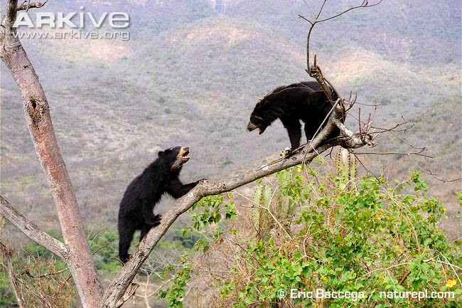 Dibenci petani Makanan utamanya adalah hati tanaman bromeliad yang gurih, buah-buahan, umbi anggrek, kulit kayu, dan jantung palem-paleman. Makanan selingannya serangga, tikus dan burung. Karena terdesak, seringkali beruang ini juga menyatroni ternak dan tanaman pertanian di perkampungan. Tak heran banyak peternak dan petani yang menganggapnya sebagai hama, dan tak segan-segan membunuhnya. Tak mengherankan jika jumlahnya terus menyusut sejak 500 tahun yang lalu. Diperkirakan jumlahnya tak sampai 10.000 ekor. Tanpa upaya pelestarian, beruang ini akan mengikuti jejak sepupunya…punah dari muka bumi. Pembangunan jalan, pipa minyak, gas, bendungan, lahan pertanian dan perkampungan mempersempit ruang gerak beruang sehingga beruang kehilangan tempat tinggalnya. Perluasan perkebunan koka dan opium juga turut menyumbang kesengsaraan sang beruang pemalu ini. Perburuan beruang juga masih terjadi. Diperkirakan 200-an ekor beruang diburu setiap tahunnya. Kandung empedunya dihargai mahal di pasar gelap dan diselundupkan ke luar negeri sebagai bahan obat-obatan tradisional. Cakarnya juga laku dijual. Pendek kata setiap bagiannya bisa jadi uang. Klop sudah penderitaannya.