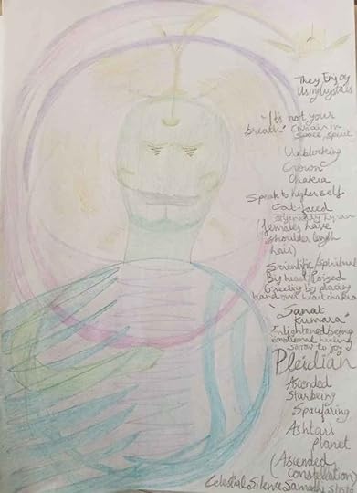 They are a space-faring race and not bound to the temporal Matrix of simulation, planet earth and solar-system. The channeled drawing below is of one who belongs to Pleiadian being Ashtar’s planet – Sanat Kumara – an enlightened master. ‘Pleidian going to Sirius B’ is one of the consistent messages I have heard from them whenever I have requested for information.