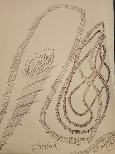 Channelled drawings in colour or black and white as appropriate have been dictated to me by higher self in great detail along with the names of people or demons they represent, in a very identifiable life-like form that pin points specific people whom I have met in my life. A few are below: