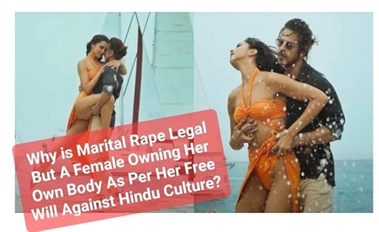 Females are seen in some cultures as things owned by men and subject to wishes and commandments of their male dominators in patriarchal cultures. They are expected to love the men who conquer them and expect them to serve food, sex and children to them, while never attracting attention of any man as per their own free will. Burqua, veil and abaya culture is one example in Islam where a curious dress code is imposed. In some Hindu communities too, a woman’s body displayed willingly in a sexually attractive way is frowned upon even in the year 2023. An example is a silly controversy ahead of the release of a big budget Bollywood movie due to a ‘saffron’ clad bikini scene being linked with ‘Hinduism’.