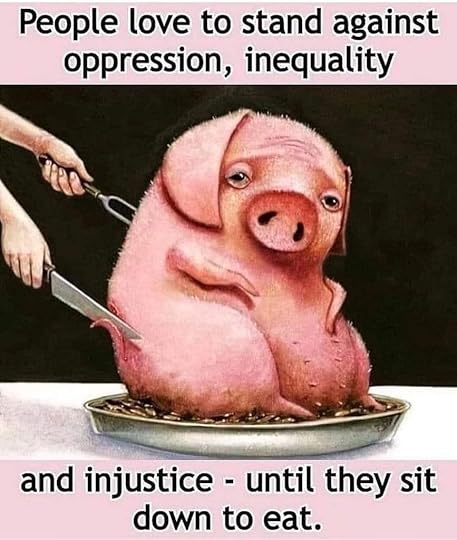 2. The common practice of objectification of animals other than humans, being turned into food after being cruelly chopped off, their lives, their babies, their breastmilk and eggs, being taken away against their free will. This too is a kind of domestic violence, rape and murder based on power and control. These crimes are shamelessly authorised as a respectable business, protected in law without any justification, as our body and mind are better being Vegan and we do not need animal products at all.