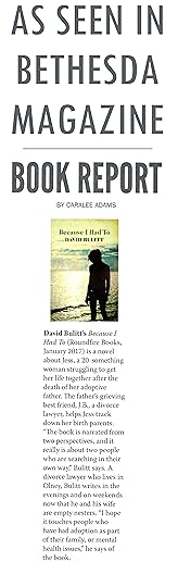 BECAUSE I HAD TO is a “cant-put-it-down-tale of adoption secrets and the dark side of a therapist’s couch.” Its author, David Bulitt weighs in on some of the mental health and contemporary themes that are woven throughout the novel, as well as writing from the perspective of a 23 year old woman.