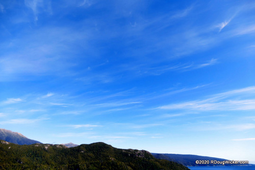 Today we’ll be looking at blue — Blue skies and blue water as Majestic Princess continues her March 2019 journey through New Zealand’s Fiordland National Park. Above you see blue water, and below we have contrail-free blue sky: