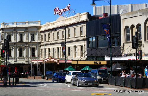 Now let’s start again from The Octagon and head down Lower Stuart Street. In the photo above you see St. Paul’s Cathedral, located along the west side of The Octagon. Turning east we find the Regent Theatre, which opened in 1928: