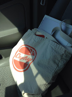 Well, I have finally gotten my groove back after all of the health issues I had over the winter and early spring. It was hard, but I think I am there. I decided to head to my favorite writing spot, Panera Bread! I brought along my laptop in my favorite "Craftsy" bag(I got it from them because I ordered tons of knitting classes from there, as well as cooking and cake decorating)so I am a lifetime customer