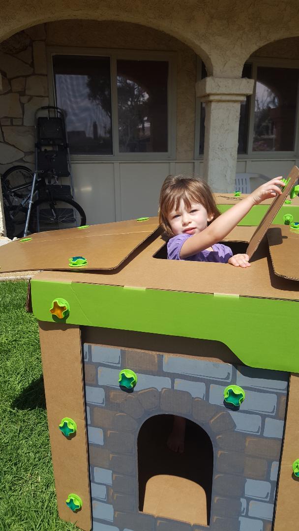 My granddaughters are a bit young (and impatient) to help out much in the building process, but they did help. And we had fun. Mostly, though it was her dad and uncle and me that built it. It is fairly simple and modular. So when my sons decided to get a little creative with what went where, they were easily able to. Which resulted in a cardboard box style castle for my grandaughters that is custom made for them! The system is durable, fun, and can be decorated with crayons, stickers, paint, etc. (I drew a heart on it and my granddaughter got mad at me because it is her castle. giggle!)