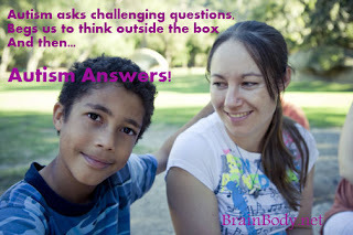 As my motto reminds me: "Autism asks challenging questions, begs us to think outside the box and then, Autism Answers!" The stuff that makes us think differently and learn from difference invites us to meet in the place where forgotten answers wait to be re-discovered and where new ideas wait to be created and considered. We, friends, are not afraid to spend some time in those places, sharing seeds of thought that grow into unusual but purely organic truths.