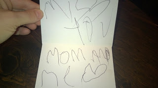And the most exciting thing happened. He sent me this in the mail. His first independent handwriting!
