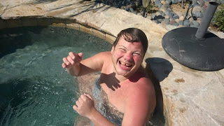 On this particular visit my twenty-one year old brother was wildly happy. The acoustics at the indoor pool were his play thing and he made strange sounds with wild abandon! While my oldest son swam nearby with new-found friends, Dar happily cleared out the hot tub.