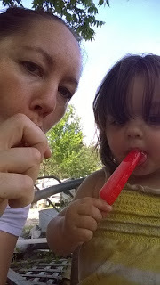 Finally, The Little Lady and Her Mom showed up. I only babysat for a few minutes, long enough to laugh at the chickens next door and to share a Popsicle. Her Mom and I chatted a bit and shared mom thoughts. Then she headed home.