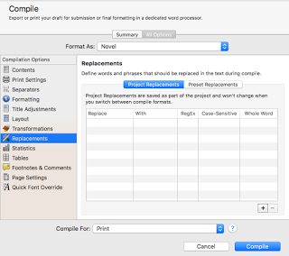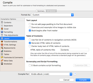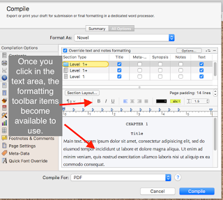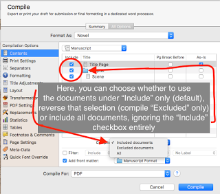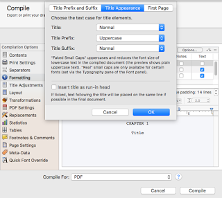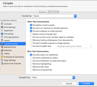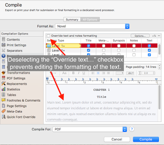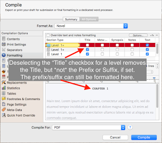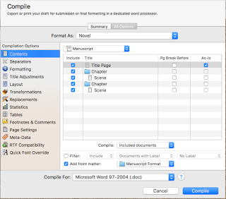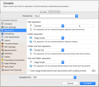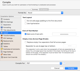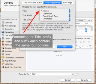I hope that you've found Compiling in Scrivener: Formatting to be insightful and informative! As always, leave comments or questions in the comment box below. Next, I'll cover the four other Option Panes that are present regardless of the "Compile For:" settings.
