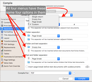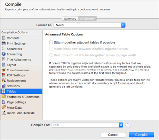 Compiling in Scrivener: Separators, Layout, and Table Options