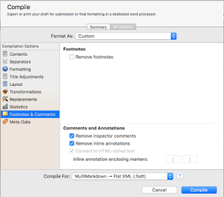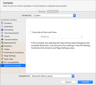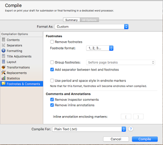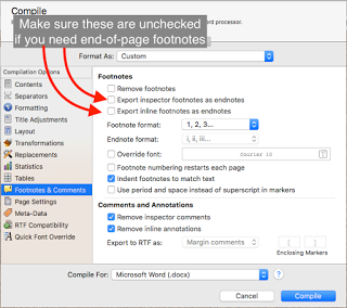 Compiling in Scrivener: Footnotes, Quick Font Override, and Page Settings
