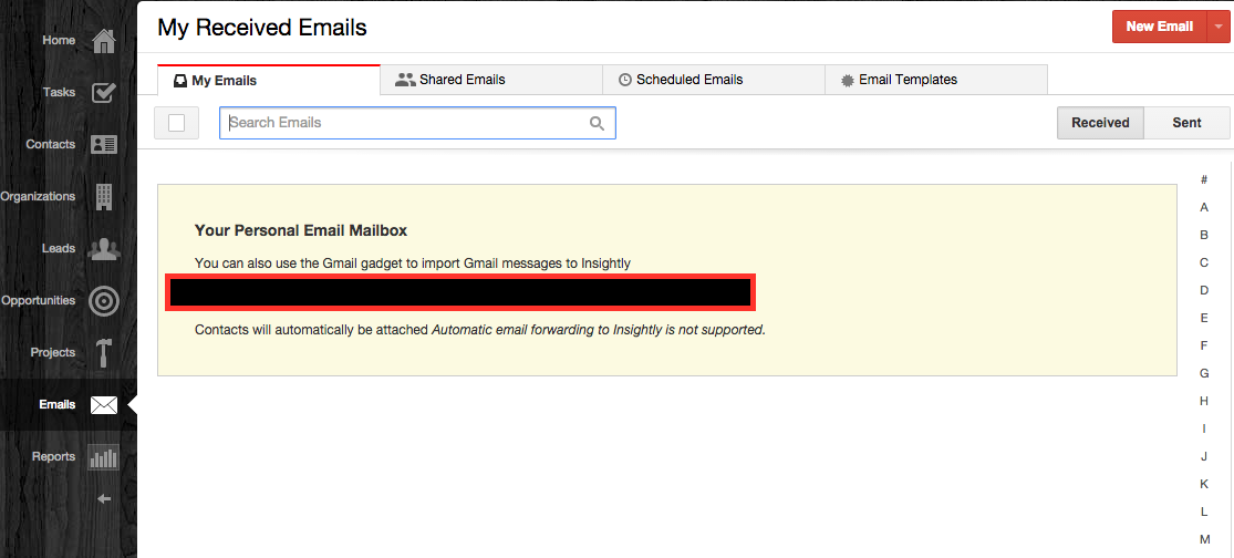 One other major advantage to using Insightly is the Personal Email Mailbox: when you create an Insightly account, a personal email address is created; by sending, forwarding, or sending a cc/bcc to this email, it will appear in your Emails tab, and emails sent here can be assigned to Leads, Contacts, Organizations, Projects or Opportunities in Insightly. By remembering to cc/bcc your Insightly Personal Email Mailbox address for all mail you send, and also forwarding any replies you receive to that address, you can keep a complete list of all email communications which are related to a submission. Some other CRM software also offers this or a similar feature. In addition to the emails, there are also tabs under the Leads (as well as Contacts) for attaching files; these can be attached by uploading, or by linking to Dropbox, Box, OneDrive, or Google Drive files.