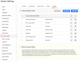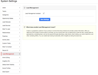 There, I enable Lead Management and add a few custom fields to the Leads module.