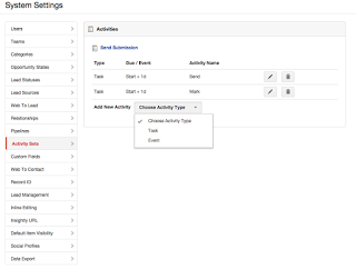 I set the reminders for these activities, and a few other parameters as shown, and then go back to the Leads module.