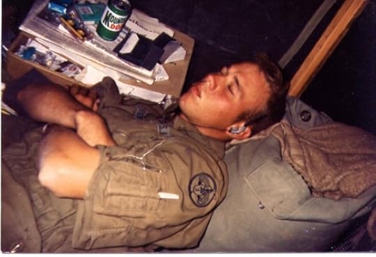 The author, ambushed by a camera while sleeping in the luxurious new GP Medium tentsIt wasn't all training. Soldiers, like anyone, need some kind of down time occasionally to maintain their sanity. We had sports events; volleyball and flag football were both favorites.