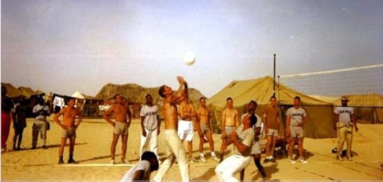 That would be SSG Miller, 2nd (Tank) Platoon, C-1/3 ACR, setting a dig. Naturally, 2nd Platoon dominated.We also did specific training exercises; during November, we were part of Exercise Imminent Thunder, and practiced several action drills & squadron/troop roles in the offense and defense: movement to contact, deliberate attack, hasty attack, hasty defense with counter-attack, and so forth. After Imminent Thunder, our regiment received a warning that we had new equipment coming. Newer M1A1HA tanks would replace our older M1A1s. Each tank platoon in the regiment was tasked to send a small detail to head out to King Abdulaziz port in Dammam to help offload them when they arrived. We spent Christmas and New Year's both in port, offloaded the tanks, and delivered them to the DOD civilians who were responsible for initial testing and final painting (desert sand, this time). After we finished our detail we were bussed back to our unit, which had been moved from the base camp into a more tactical assembly area. Here, they did initial weapons zero and gunnery with the new tanks.Finally, after just over three-and-a-half months, we moved out to a new assembly area. While there, about to take responsibility for a guard shift, I heard the news over the radio: war had begun.