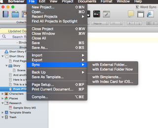 Caveat: if you plan to use a plain text editor, such as iaWriter (US $2.99), you must set up the External Folder Sync to use plain text, rather than RTF files. Also, if you have an outline already created, or have some idea what your structure will look like, I have found it easiest to make sure the files I think I am going to want already exist, even if they are empty, before I even set up the External Folder for syncing. You may feel differently, and that's okay!